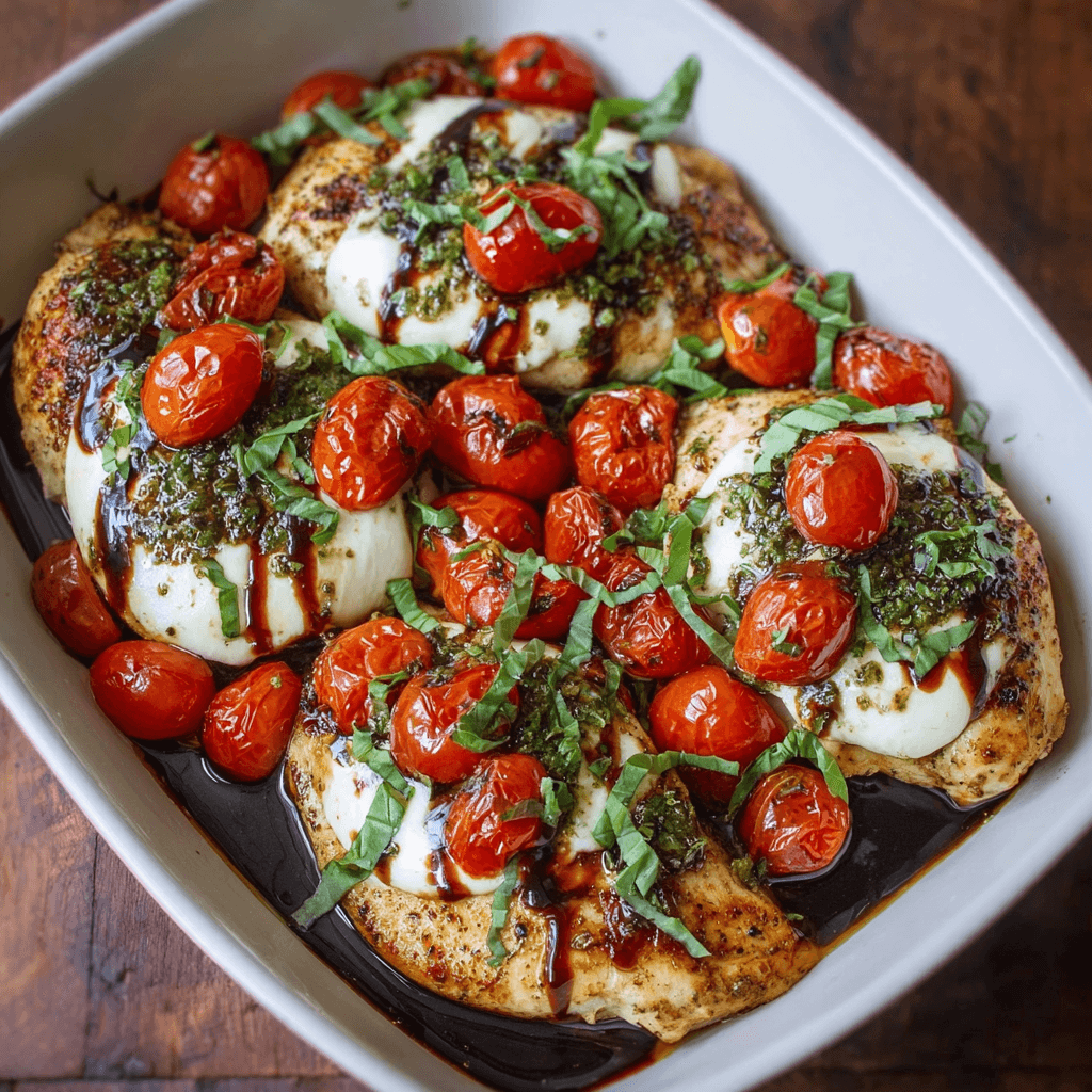 Simple Caprese Chicken Bake with Balsamic Glaze