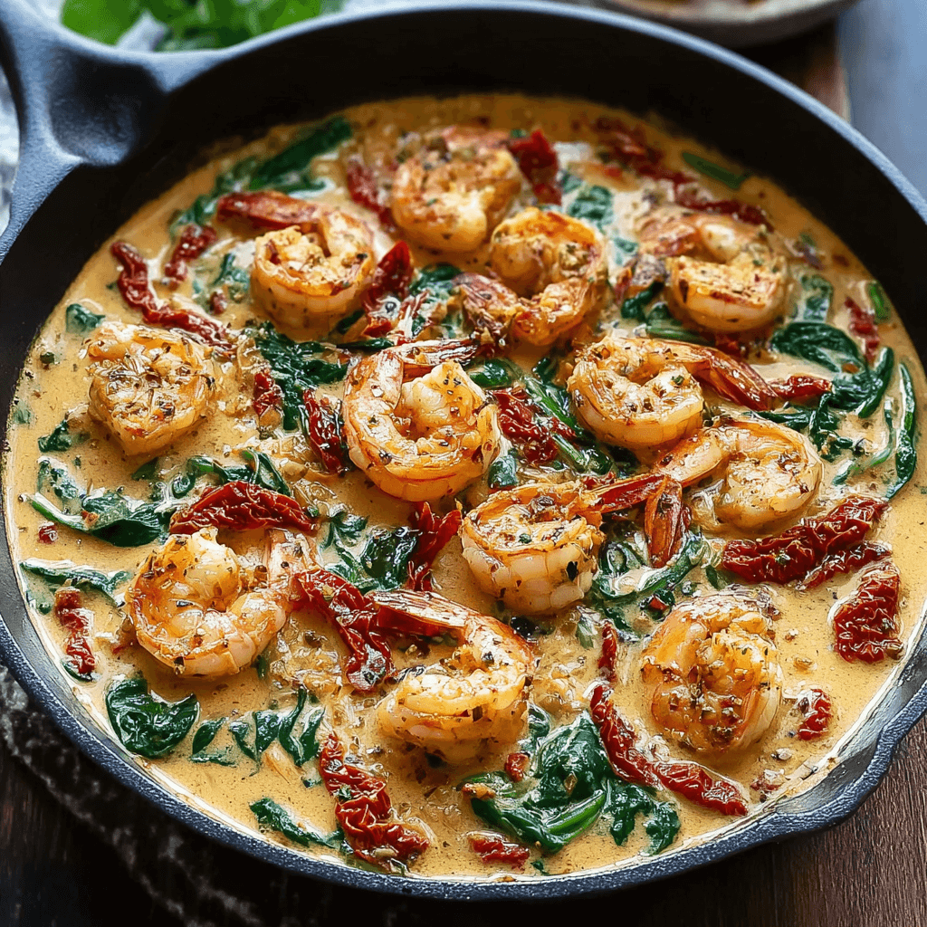 Creamy Tuscan Shrimp with Garlic & Sun-Dried Tomatoes