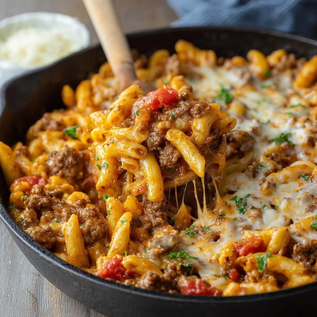 This skillet dinner is designed with minimal ingredients but maximum flavor, making it a great addition to your repertoire. You’ll appreciate the balance of gooey cheese and savory beef, all brought together with pasta that cooks right in the same skillet—no extra pots, no hassle.