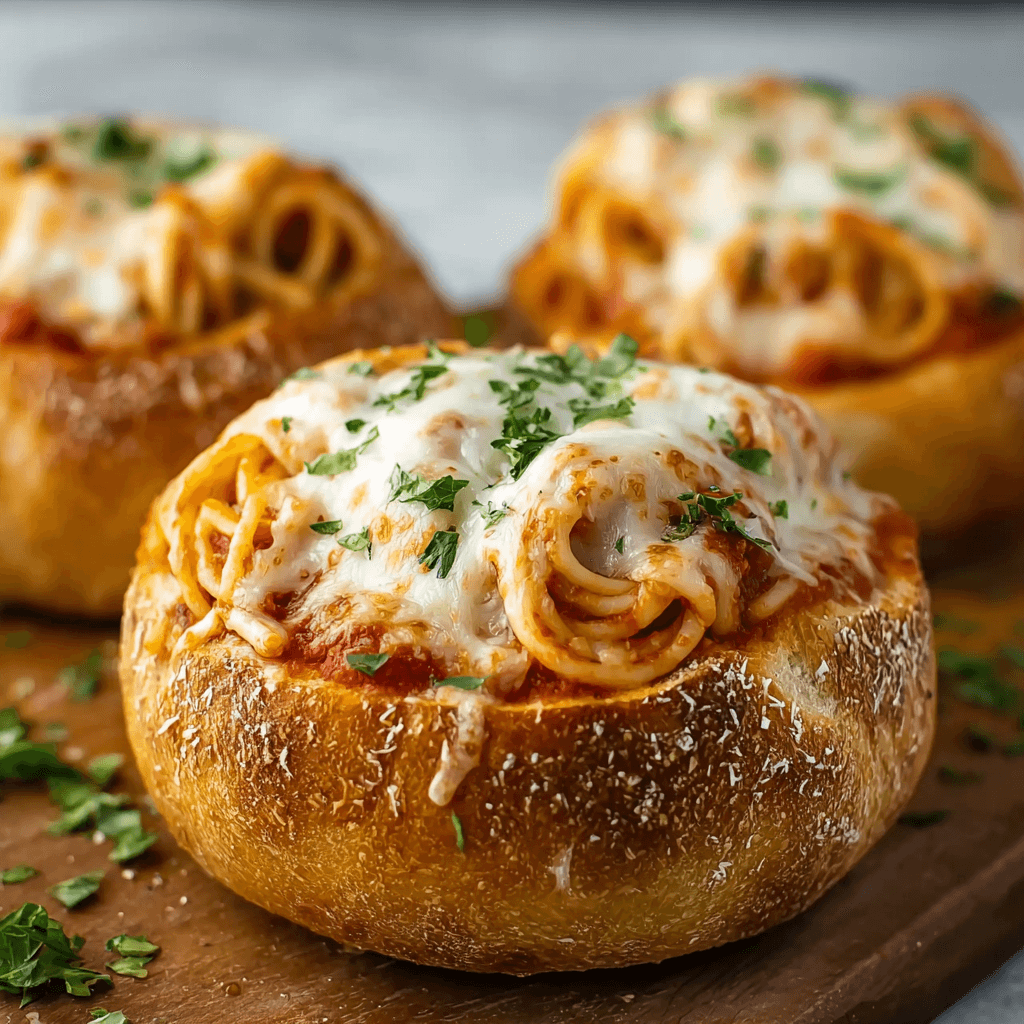 • Leftovers: Store leftover filled spaghetti bowls in the fridge. Reheat in the oven at 350°F (175°C) until warmed through. The bread will soften but will still be delicious.