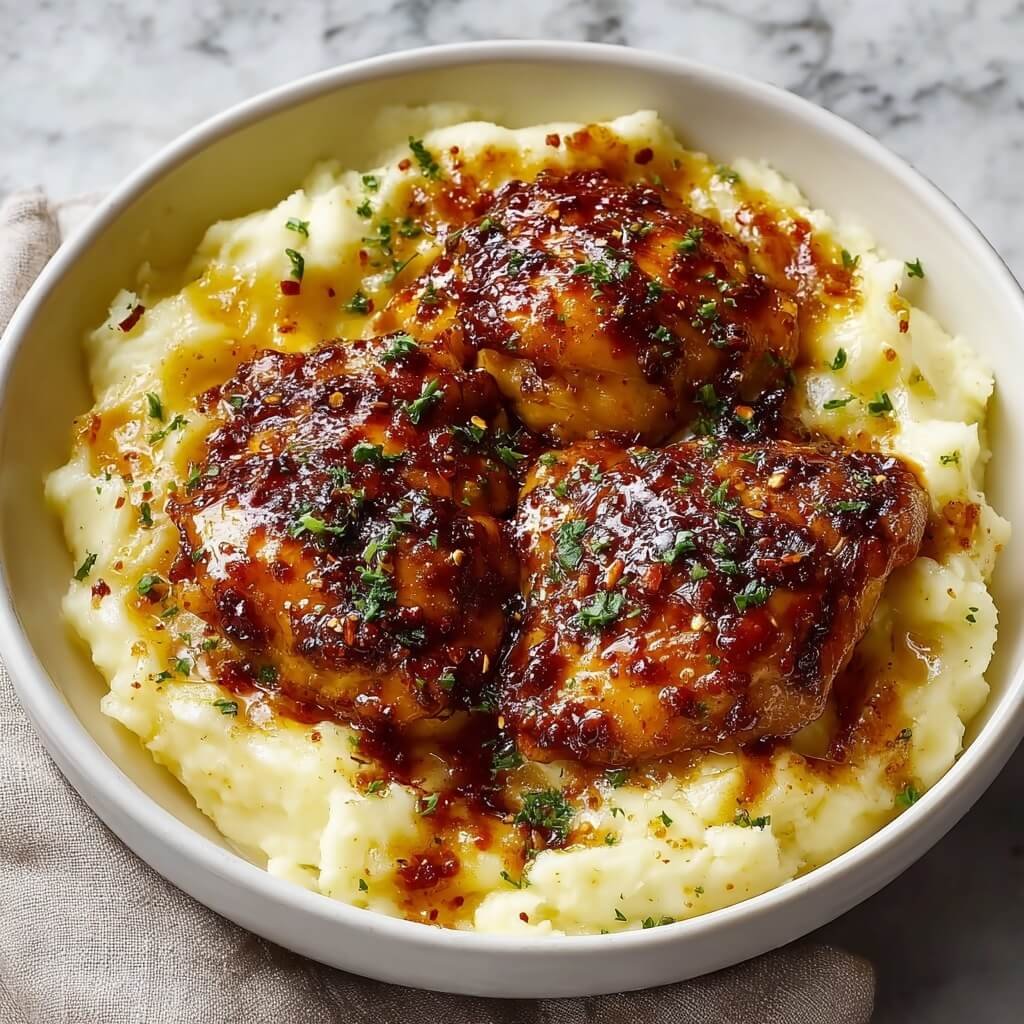 - Comfort Food at Its Best: The mashed potatoes bring velvety texture complementing tender, juicy chicken thighs.