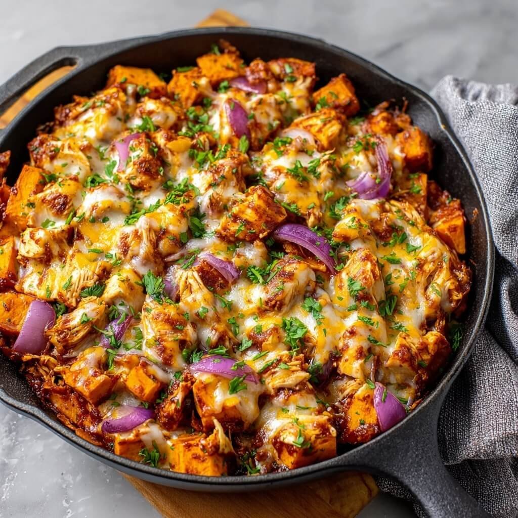 Sweet Potato Skillet with BBQ Chicken & Cheese for Easy Weeknight Dinners